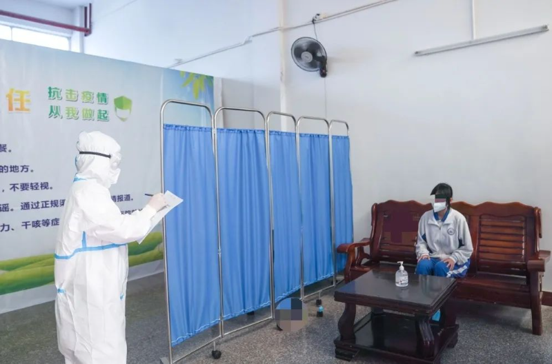 1.疾控工作人员到隔离观察室了解“密接”学生情况;
